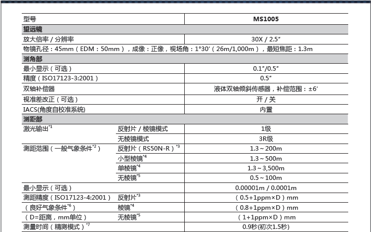 符合《測繪資質(zhì)分級標(biāo)準(zhǔn)規(guī)定(2014版)》中“大地測量”及“工程測量”甲級認(rèn)證標(biāo)準(zhǔn)對高精度全站儀的要求。