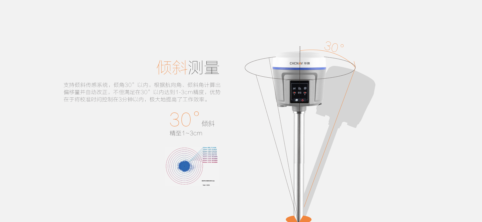 X10pro標配支持傾斜測量系統(tǒng),支持30°以內(nèi)精度≤3cm |