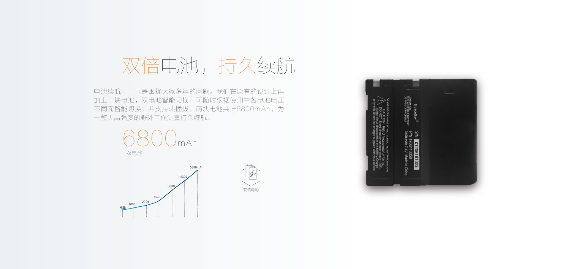 8000毫安時超大容量電池,完全保障用戶兩天的高負荷使用,防水防塵達到工業(yè)IP68等級,為外業(yè)工作提供更多便捷。